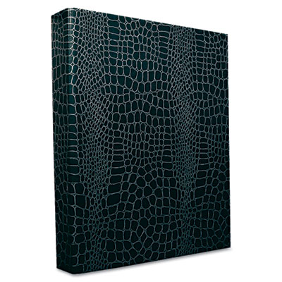 Makes other binders "green" with envy. Contains one of the highest percentages of recycled content. Earth friendly: 100% land fill safe. Heavy-duty metal rings for long-lasting dependable use. High-gloss, scratch resistant, simulated crocodile leather embossed paper for a professional, high-end look. Inside pocket keeps loose papers safe and secure. No VOCs (Volatile Organic Compounds). Capacity Range [Max]: 1"; Sheet Capacity: 175; Color(s): Black.