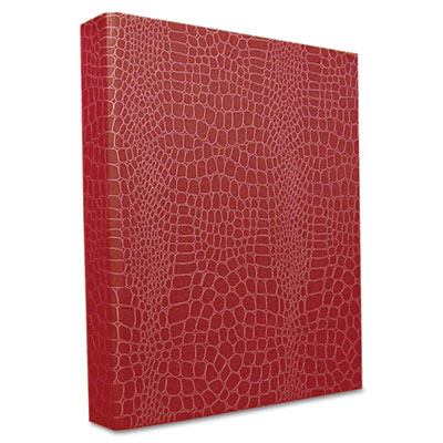 Makes other binders "green" with envy. Contains one of the highest percentages of recycled content. Earth friendly: 100% land fill safe. Heavy-duty metal rings for long-lasting dependable use. High-gloss, scratch resistant, simulated crocodile leather embossed paper for a professional, high-end look. Inside pocket keeps loose papers safe and secure. No VOCs (Volatile Organic Compounds). Capacity Range [Max]: 1"; Sheet Capacity: 175; Color(s): Red.