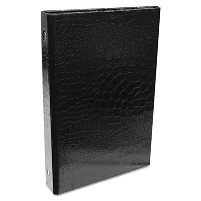 Earth friendly: 100% landfill safe. High-gloss, scratch-resistant, simulated crocodile leather embossed paper for a professional, high-end look. Durable three-ring mechanism for long-lasting dependable use. Inside pocket keeps loose papers safe and secure. Scratch- and moisture-resistant. No VOCs (Volatile Organic Compounds). Capacity Range [Max]: 1/2"; Sheet Capacity: 100; Color(s): Black.