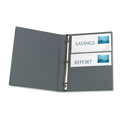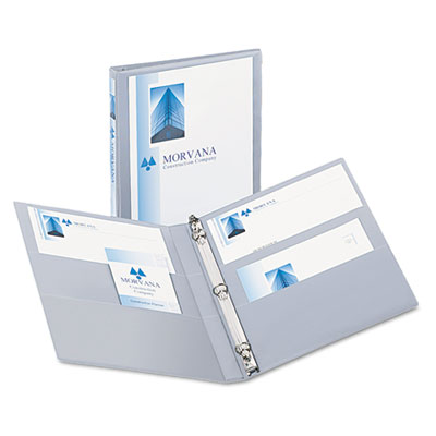 Create a customized front cover and spine. Nonstick, archival-safe material won't lift ink or toner off of printed pages. EZ-Turn™ ring for smooth page turning. Back-mounted rings allow pages to lie flat. Wider front and back binder panels fully cover standard dividers and sheet protectors. PVC-free. Capacity Range [Max]: 1/2"; Sheet Capacity: 100; Color(s): Shadow Gray.