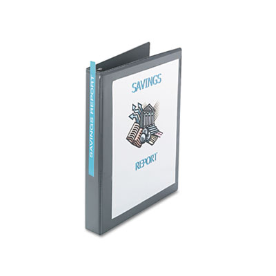 Create a customized front cover and spine. Nonstick, archival-safe material won't lift ink or toner off of printed pages. EZ-Turn™ ring for smooth page turning. Back-mounted rings allow pages to lie flat. Wider front and back binder panels fully cover standard dividers and sheet protectors. PVC-free. Capacity Range [Max]: 1"; Sheet Capacity: 175; Color(s): Shadow Gray.
