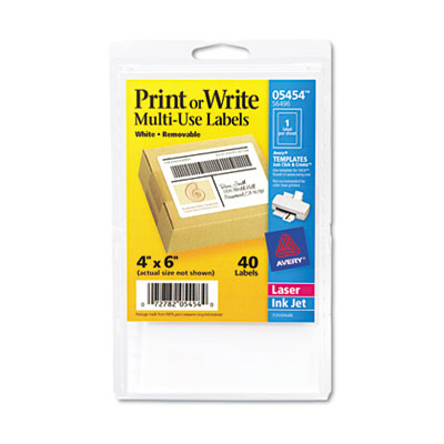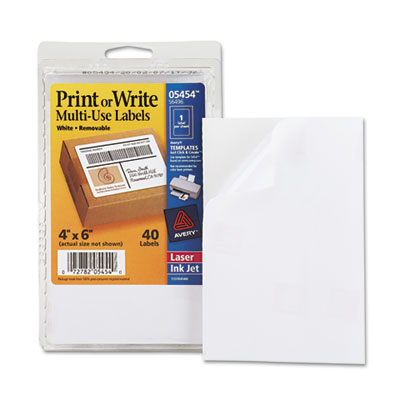 AVE05454 Print or Write Removable Multi-Use Labels, 4 x 6, White, 40/Pack By AVERY-DENNISON