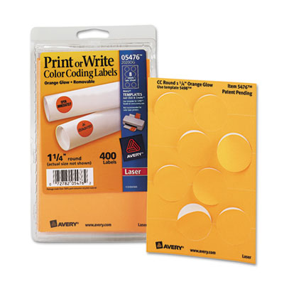 AVE05476 Print or Write Removable Color-Coding Labels, 1-1/4in dia, Neon Orange, 400/Pack By AVERY-DENNISON