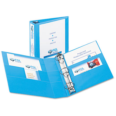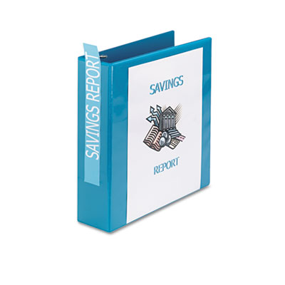 Create a customized front cover and spine. Nonstick, archival-safe material won't lift ink or toner off of printed pages. EZ-Turn™ ring for smooth page turning. Back-mounted rings allow pages to lie flat. Wider front and back binder panels fully cover standard dividers and sheet protectors. PVC-free. Capacity Range [Max]: 2"; Sheet Capacity: 375; Color(s): Light Blue.