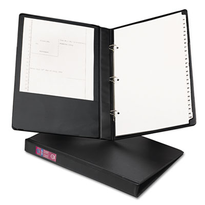 Durable construction makes it ideal for frequent reference. EZ Turn rings make page referencing smoother. Back-mounted rings allow pages to lie flat. Label holder on spine for easy identification of contents. Four inside pockets for storage of loose sheets. Capacity Range [Max]: 1"; Sheet Capacity: 200; Color(s): Black.