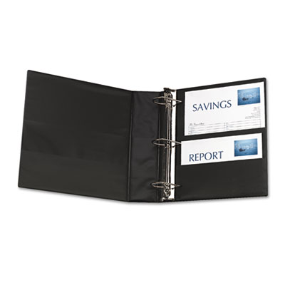 Back-mounted slant rings hold up to 25% more sheets than same size round rings and allow pages to lie flat. Two interior pockets store unbound materials so nothing gets lost. Easily identify contents with label holder. Capacity Range [Max]: 2"; Sheet Capacity: 480; Color(s): Black.