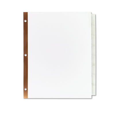 50% more printing space for tab titles than traditional tab dividers. Special tab design allows easy insertion and removal, but keeps insert securely in place. Three-hole punched for use in standard ring binders. Laser and inkjet printer compatible. Tab Style: 8-Tab; Tab Color(s): Clear; Index Divider Size: 11 x 8 1/2.