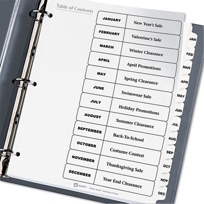 AVE11126 Ready Index Classic Tab Titles, 12-Tab, Jan-Dec, Letter, Black/White, 12/Set By AVERY-DENNISON