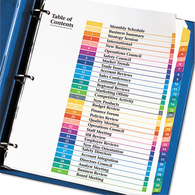 AVE11129 Ready Index Contemporary Table of Contents Divider, 1-31, Multi, Letter By AVERY-DENNISON