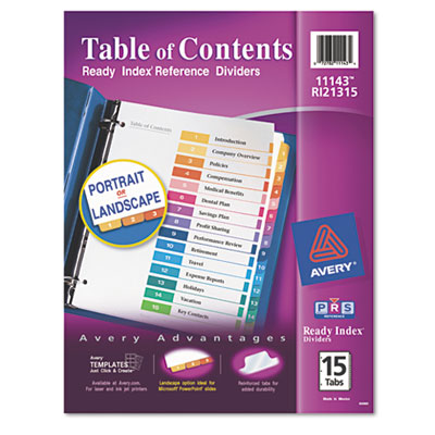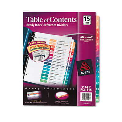 AVE11143 Ready Index Contemporary Table of Contents Divider, 1-15, Multi, Letter By AVERY-DENNISON