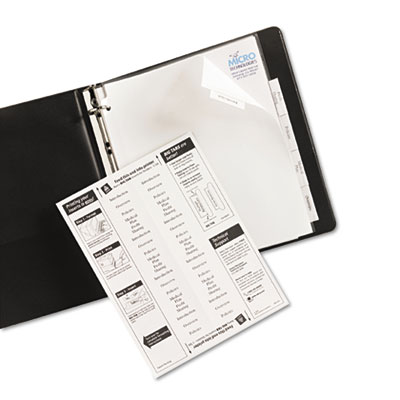 50% more printing space for tab titles than traditional tab dividers. Special tab design allows easy insertion and removal, but keeps insert securely in place. Three-hole punched for use in standard ring binders. Laser and inkjet printer compatible. Tab Style: 5-Tab; Tab Color(s): Clear; Index Divider Size: 11 x 9.