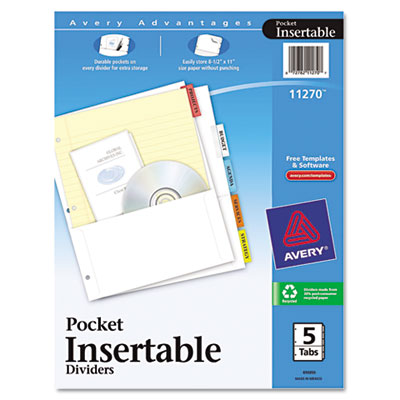 AVE11270 WorkSaver Pocket Dividers w/Five Insertable Multicolor Tabs, 5/Set By AVERY-DENNISON