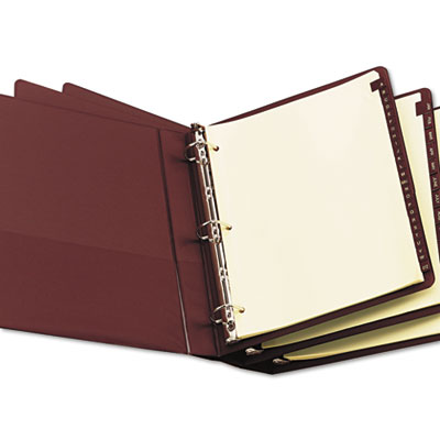 Gold color printing on front and back of tabs. Single-sided clear reinforced binding edge. Tab Style: 25-Tab; Tab Color(s): Red; Index Divider Size: 11 x 8 1/2.