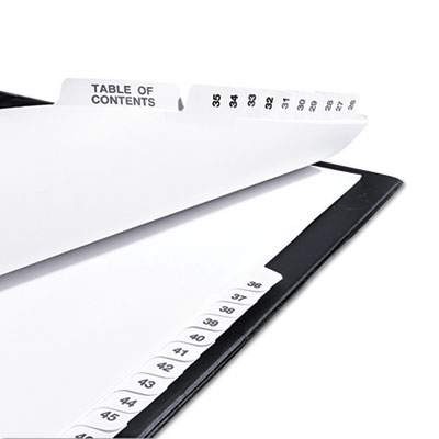 Rip Proof™ reinforced, dual-sided, laminated tabs make it easy to organize your information. The binding edge is unpunched, so these dividers can fit practically any binding system. Your motion for clean and orderly files has been granted. Ideal for index briefs, legal exhibits, mortgage documentation files and more! Tab Style: 27-Tab; Tab Color(s): White; Index Divider Size: 11 x 8 1/2.