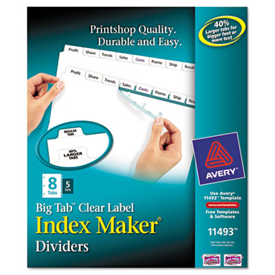 AVE11493 Index Maker with Big Tab, 11x8-1/2, 8-Tab, White, 5 Sets/Pack By AVERY-DENNISON