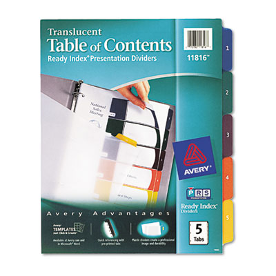 AVE11816 Ready Index Table/Contents Dividers, 5-Tab, Letter, Assorted, 5/Set By AVERY-DENNISON