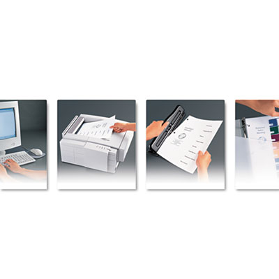 - Table of Contents page is translucent, allowing a section title sheet printed on your laser or inkjet printer to show through.