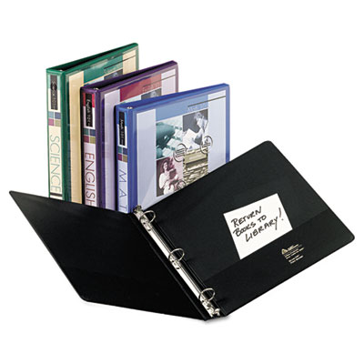 Customize inserts with clear overlay on covers and spine. Rings stay closed to prevent papers from falling out. Tuck additional papers, pamphlets, notes and more into interior pockets for easy access. Easy-to-use templates available from manufacturer's website. Capacity Range [Max]: 1"; Sheet Capacity: 175; Color(s): Assorted.