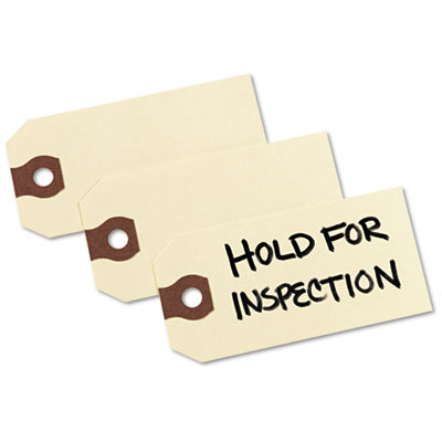 These tags feature a reinforced hole to help ensure your shipping information stays put for the journey, no matter how long or short. Extra reinforcement allows the tag to be held firmly without ripping through the cardstock. Provides a smooth writing surface. Fasten with your preferred method. Size: 3 1/4 x 1 5/8; Color(s): Manila.