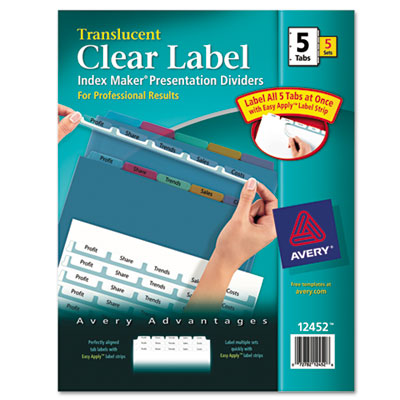 AVE12452 Index Maker Clear Label Punched Dividers, Multicolor 5-Tab, Letter, 5 Sets/Pack By AVERY-DENNISON