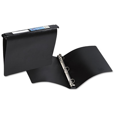 Pull retractable storage hooks out to lock rings and hang file away neatly; tabs push in to open rings for easy document removal. Hanging storage hooks retract when binder's in use, so papers won't catch, snag or rip and binder looks neat and professional. Rings lock in place so binder contents stay neat, organized and securely in place. Handy spine label lets you identify contents quickly. PVC-free. Capacity Range [Max]: 1"; Sheet Capacity: 175; Color(s): Black.