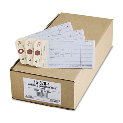 Make the process of tracking your inventory simpler. Easy-to-use tags let you fill in relevant information to ease the inventory process. Each tag features a detachable top sheet and layer of carbon paper so you can keep the completed tag attached to the item and file a copy away. Size: 6 1/4 x 3 1/8; Color(s): Manila;White; Series: 1 to 500.
