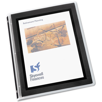Prepare presentations that are ready to swing into action and are dressed to impress. Durable plastic that keeps your pages looking neat and presentable. Stylish graphic border on cover that helps your work look great. See-through view pocket encourages y Capacity Range [Max]: 1/2"; Sheet Capacity: 100; Color(s): Black.