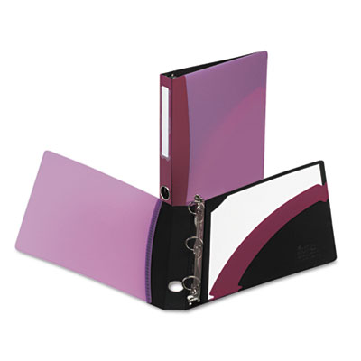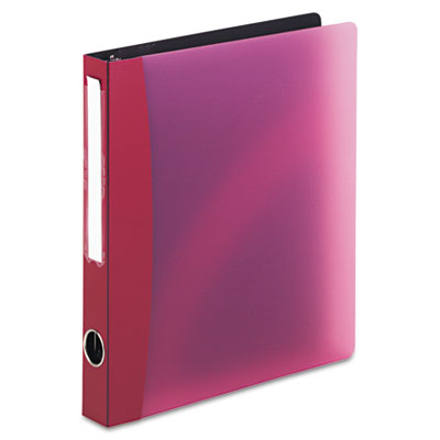 This flexible, lightweight binder is fabricated with stiff covers and engineered to stand upright on a variety of surfaces. Grab this binder on the run by reaching for its handy spine-drilled finger hole. Identify the contents of your binder quickly with this unique slide-on, slide off spine label holder. Corner Lock™ feature keeps papers from falling out of pockets. Four inside pockets for greater organization. PVC-free. Capacity Range [Max]: 1"; Sheet Capacity: 175; Color(s): Burgundy.