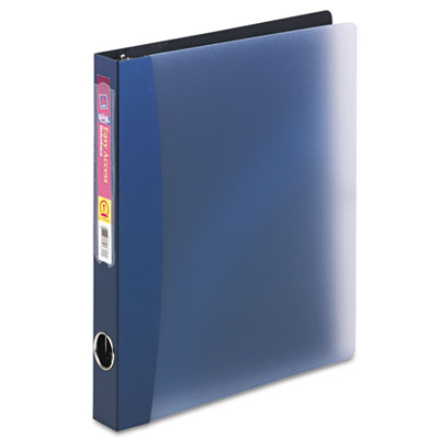 This flexible, lightweight binder is fabricated with stiff covers and engineered to stand upright on a variety of surfaces. Grab this binder on the run by reaching for its handy spine-drilled finger hole. Identify the contents of your binder quickly with this unique slide-on, slide off spine label holder. Corner Lock™ feature keeps papers from falling out of pockets. Four inside pockets for greater organization. PVC-free. Capacity Range [Max]: 1"; Sheet Capacity: 175; Color(s): Dark Blue.