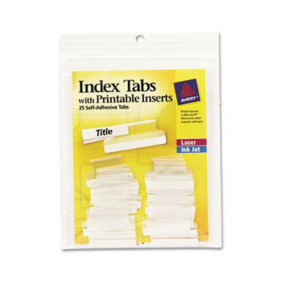 AVE16221 Self-Adhesive Tabs with White Printable Inserts, One Inch, Clear Tab, 25/Pack By AVERY-DENNISON