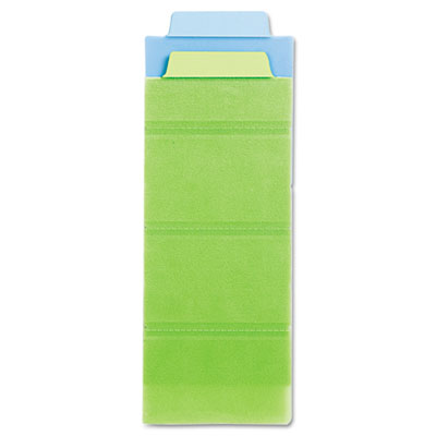 Flexible organization tool that combines the best of notes, tabs and flags in one. Durable film material with a paper tab overlay. Writable on both tab and body surfaces. See-through and repositionable. Turns pages like a divider for easy reference. Perforated, providing the option to separate the body sections from the tab for extra highlighting and note-taking flexibility. Color(s): Cool Blue/Cool Green.