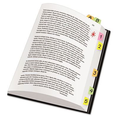 Flexible organization tool that combines the best of notes, tabs and flags in one. Durable film material with a paper tab overlay. Writable on both tab and body surfaces. See-through and repositionable. Turns pages like a divider for easy reference. Now in Dispensers! Color(s): Grapefruit/Lemon/Lime/Orange.