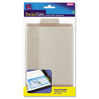 AVE16364 PocketTab Repositionable Storage Pockets, 5 x 7 1/2, Taupe, 5/Pack By AVERY-DENNISON