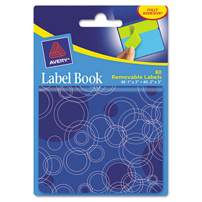 AVE22067 Removable Label Pad Books, 1 x 3 Green & 2 x 3 Blue, Blue Circles, 80/Pack By AVERY-DENNISON