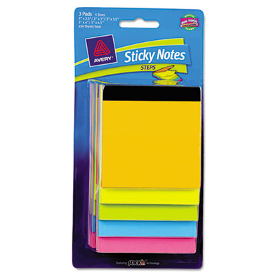 AVE22611 Step Notes, Assorted, 150 Sheets, Bright, 3 Pads/Pack By AVERY-DENNISON