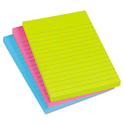 AVE22644 Flat Sticky Notes, 4 x 6, Bold Lined, 100 Sheets per Pad, 3 Pads per Pack By AVERY-DENNISON