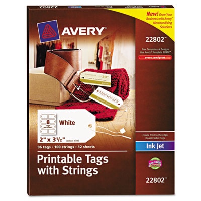 AVE22802 Blank Printer-Compatible Tags With Strings, 2 x 3 1/2, White, 96/Pack By AVERY-DENNISON