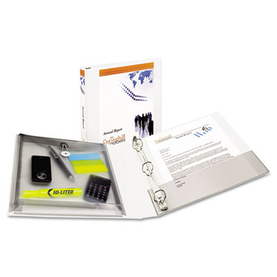 Protect and store paper and supplies with ease. Fully enclosed clasped pocket holds paper and other essentials. Water-resistant material protects documents from the elements. Durable construction, EZ-Turn™ ring for added page capacity and smooth page turning. Gap Free™ ring design that prevents gapping and misalignment of rings so sheets don't fall out. Capacity Range [Max]: 1"; Sheet Capacity: 175; Color(s): White.