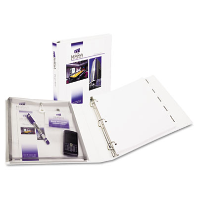 Protect and store paper and supplies with ease. Fully enclosed clasped pocket holds paper and other essentials. Water-resistant material protects documents from the elements. Durable construction, EZ-Turn™ ring for added page capacity and smooth page turning. Gap Free™ ring design that prevents gapping and misalignment of rings so sheets don't fall out. Capacity Range [Max]: 2"; Sheet Capacity: 480; Color(s): White.