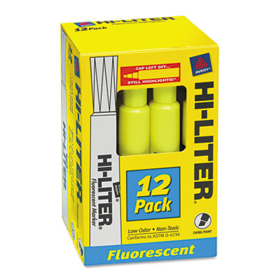 AVE24000 Desk Style Highlighter, Chisel Tip, Fluorescent Yellow Ink, 12/Pk By AVERY-DENNISON