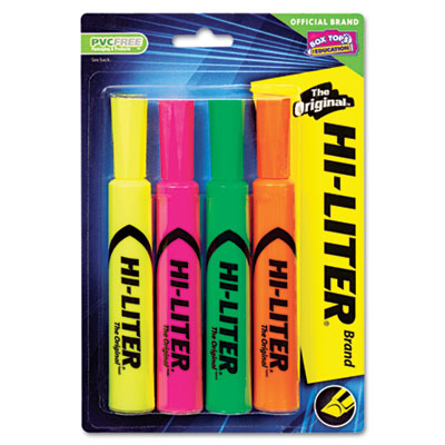 The original™ highlighter with brilliant read-through colors and a molded chisel tip to highlight or underline. Durable plastic tip for smooth highlighting—won't fray or "mush." Formula allows you to leave cap off for up to one week and still highlight. Quick-drying ink. Color(s): Assorted; Tip Type: Chisel; Assortment: Fluorescent Green;Fluorescent Orange;Fluorescent Pink;Fluorescent Yellow.