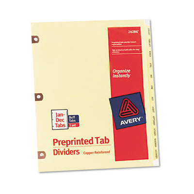 AVE24286 Copper Reinforced Laminated Tab Dividers, 12-Tab, Jan-Dec, Letter, Buff, 12/Set By AVERY-DENNISON