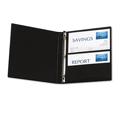 Unique EZ-Turn™ ring design for smoother page turning. Back-mounted rings allow pages to lie flat. Two inside pockets store unbound materials so nothing gets lost. Black vinyl interior liner masks minor blemishes, wear and soil. Capacity Range [Max]: 1/2"; Sheet Capacity: 100; Color(s): Blue.