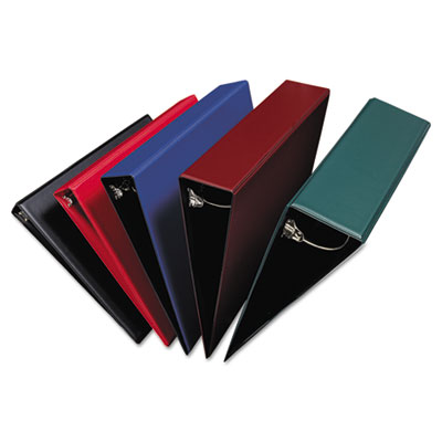 Unique EZ-Turn™ ring design for smoother page turning. Back-mounted rings allow pages to lie flat. Two inside pockets store unbound materials so nothing gets lost. Black vinyl interior liner masks minor blemishes, wear and soil. Capacity Range [Max]: 1"; Sheet Capacity: 200; Color(s): Black.