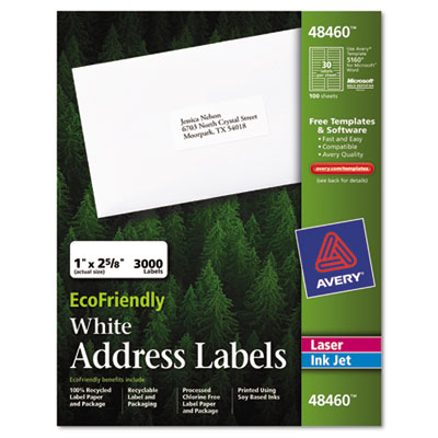 AVE48460 EcoFriendly Labels, 1 x 2-5/8, White, 3000/Pack By AVERY-DENNISON