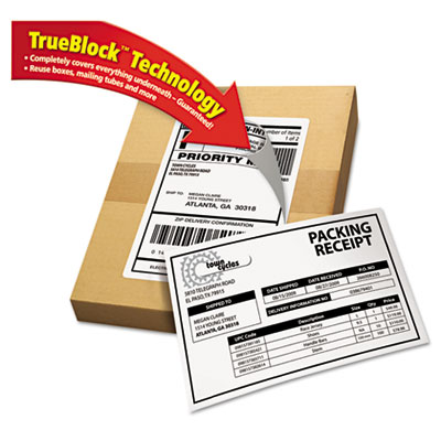 - TrueBlock™ Technology completely covers everything underneath, so you can reuse boxes and envelopes over and over again.