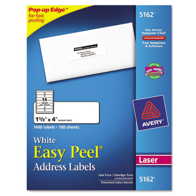 AVE5162 Easy Peel Laser Address Labels, 1-1/3 x 4, White, 1400/Box By AVERY-DENNISON