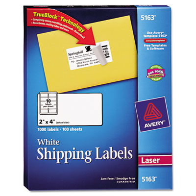 AVE5163 Shipping Labels with TrueBlock Technology, 2 x 4, White, 1000/Box By AVERY-DENNISON