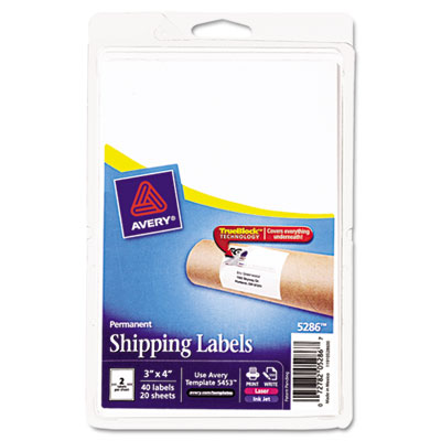 AVE5286 Laser/Inkjet Shipping Labels w/TrueBlock Technology, 3 x 4, White, 40/PK By AVERY-DENNISON