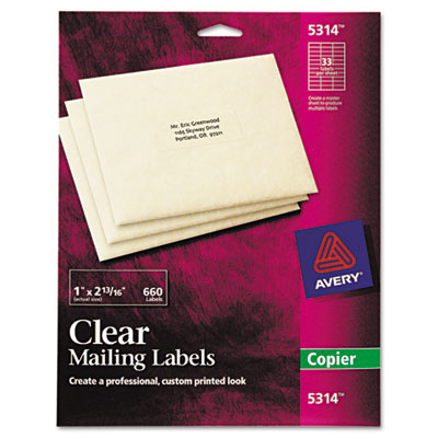 AVE5314 Self-Adhesive Mailing Labels for Copiers, 1 x 2-13/16, Clear, 660/Pack By AVERY-DENNISON